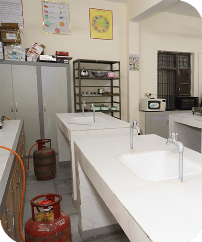 Hygienic kitchen and dining hall to accommodate 80% of the students at a time.